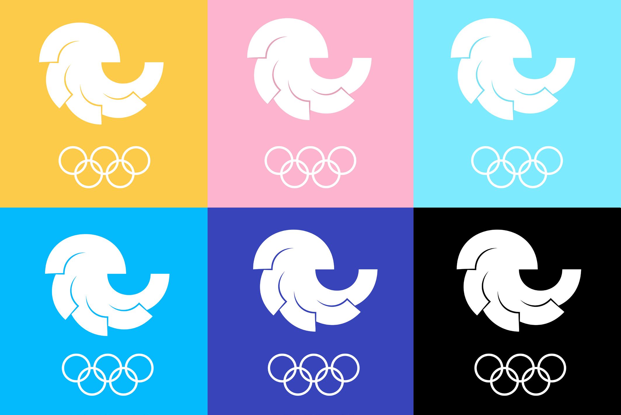 The logo is designed to work together with the five Olympic rings creating a harmonic whole thanks to the repetition of circular shapes. It could be used in either black or white against different coloured backgrounds.