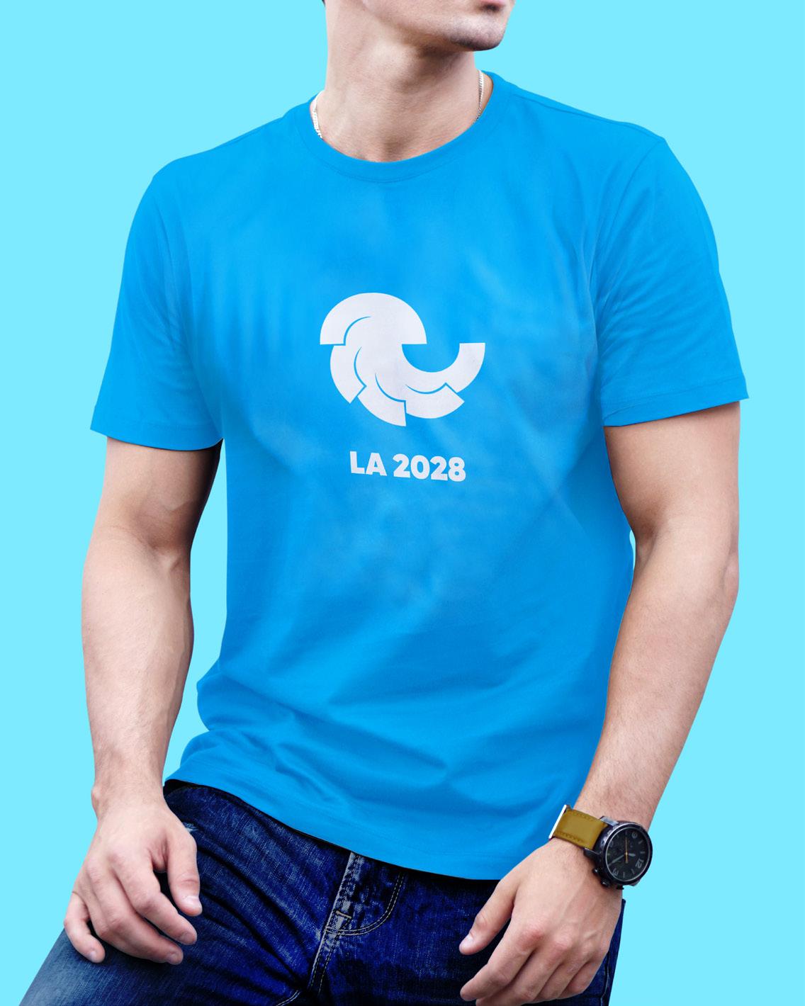 The logo is made up of five half circles, echoing the five Olympic rings. The circles are in different colours inspired by street art but also representing the sun and the ocean, which are the hallmark of Los Angeles. The arches