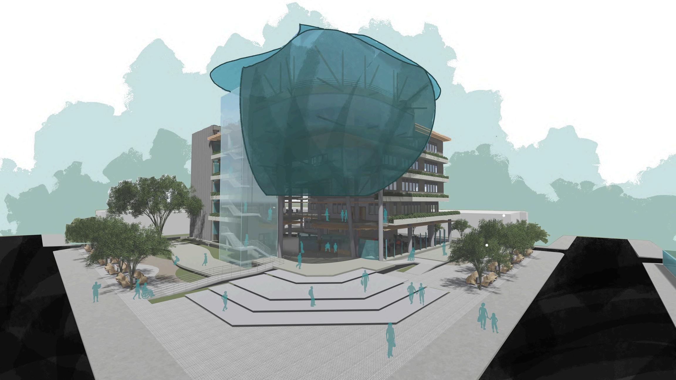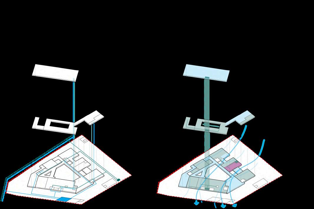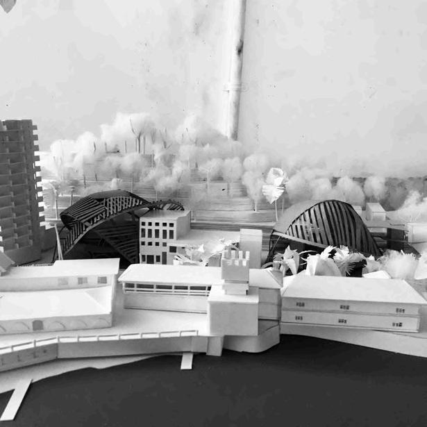 The images were then reconfigured into various iterations to create a threedimensional volume which was carved out and then modelled to give the concept depth and dimension and then applied to the site
