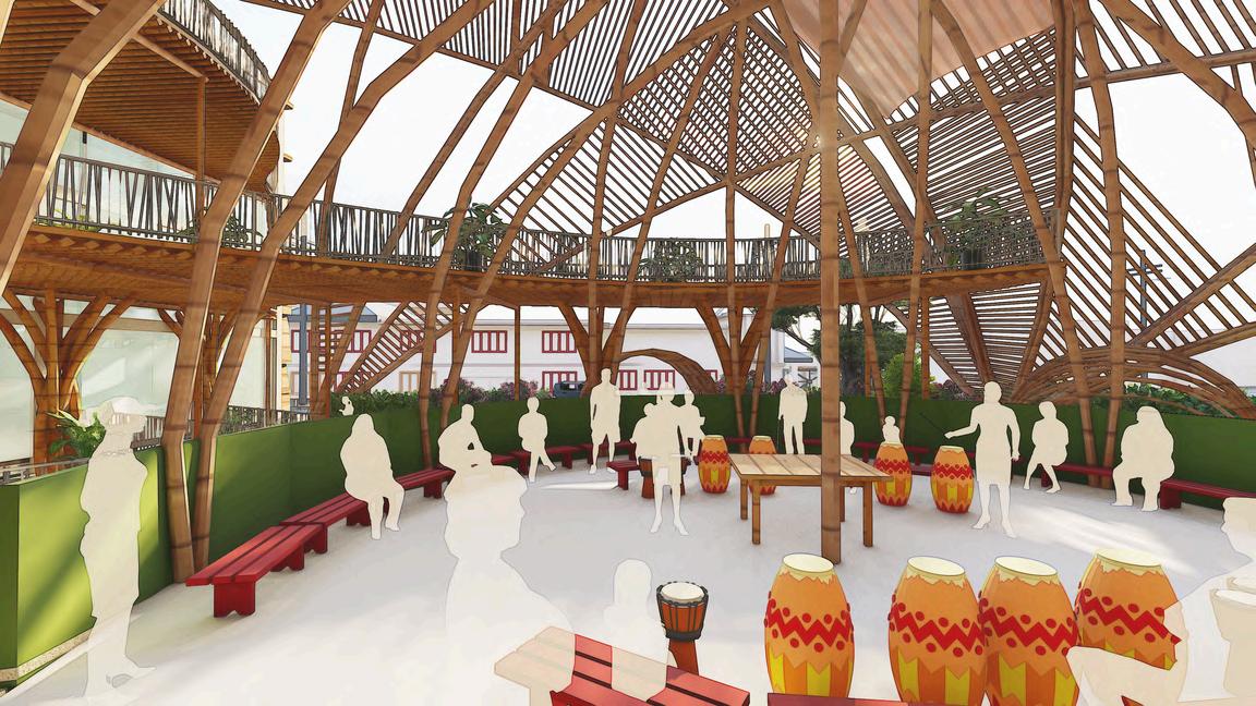 The workshop is a space to teach guests how to make different items relevant to the Rastafarian culture; drums used for worship, jewellery, clothing, natural products, etc The viewing deck is for guests to view and partake in the celebrations taking place in the Binghi from an elevated level.