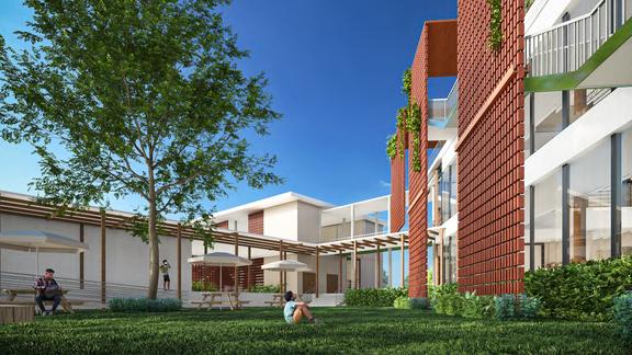 Due to the naturally vegetated courtyard on the ground floor that connect to all 3 levels, most of the site is passively cooled with unrestricted air flowing from the Caribbean Sea across the Jimmy Cliff Boulevard