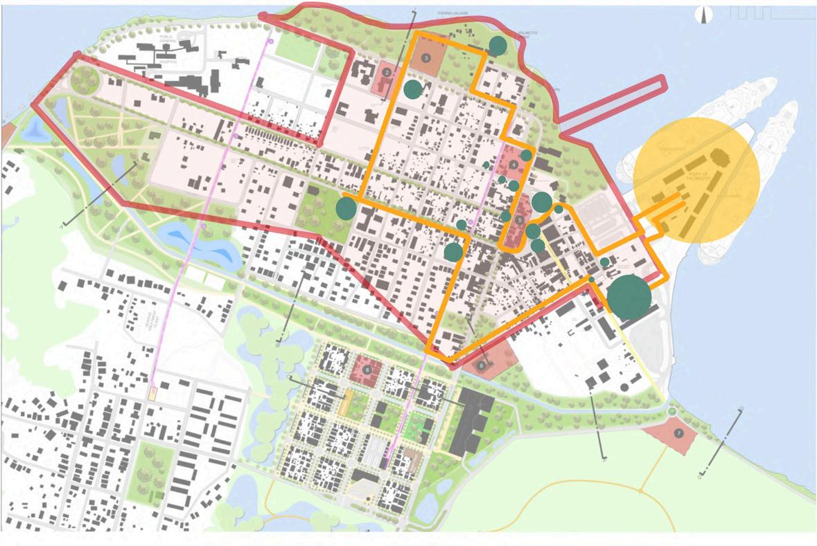 ArchitectureofMerit ProposedSites FalmouthCruisePort ProposedWalkingTrai HistoricDistrictBoundary MAPSHOWINGSITEINRELATIONTOPROPOSEDWALKINGTRAILANDCRUISESHIPPIER MixedUse Cvic WndDirection LOCATIONMAP MARKET STREET KING STREET QUEEN STREET MARKE UPPERPARADESTREET PETTICOA GEORGESTREET 2 FALMOUTHSTREET OpenAreas Commercial