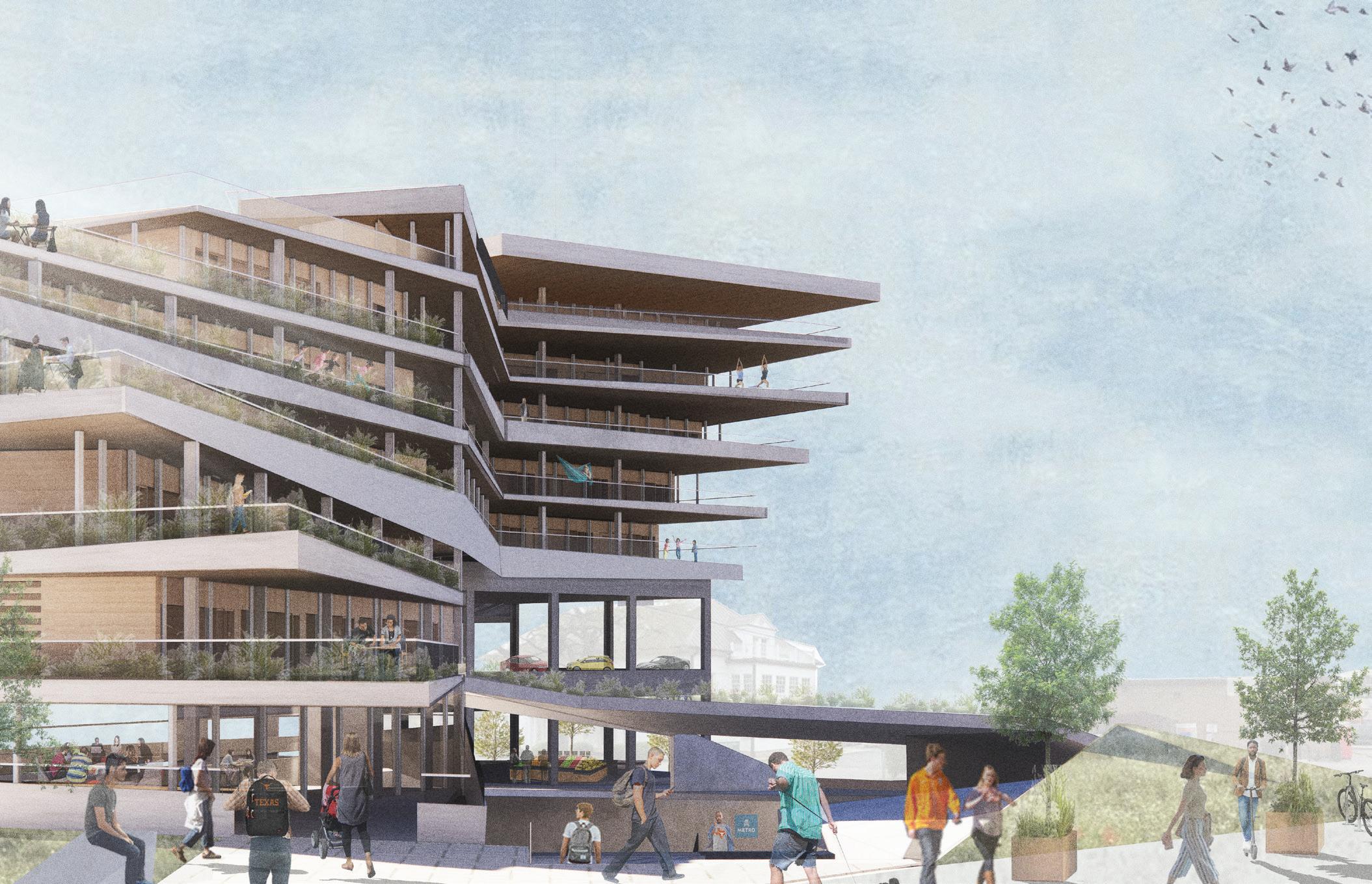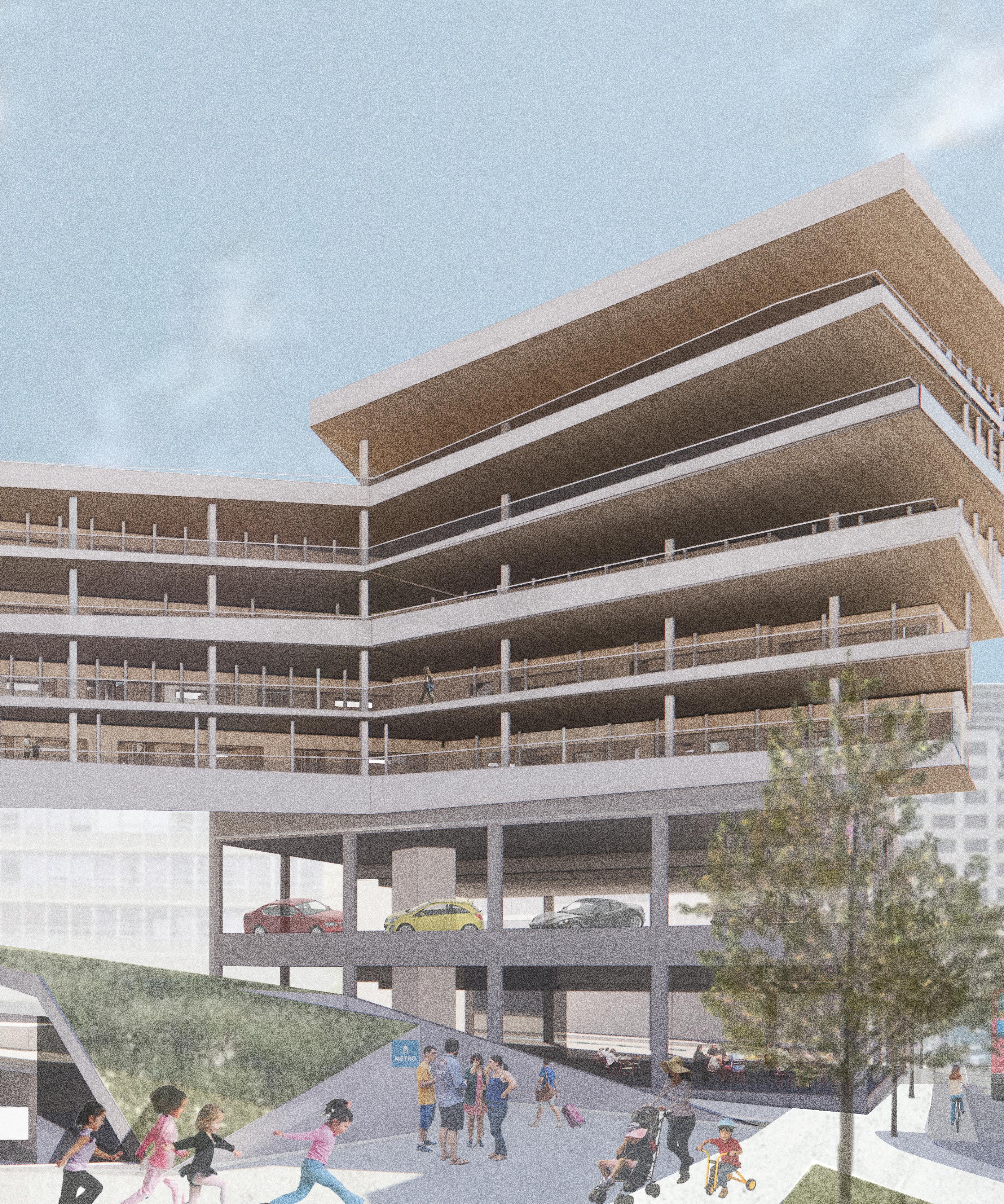 Beautify the Ring Road and Consolidate Parking to free the front of the site from vehicles in exchange for a large programmed outdoor community space.