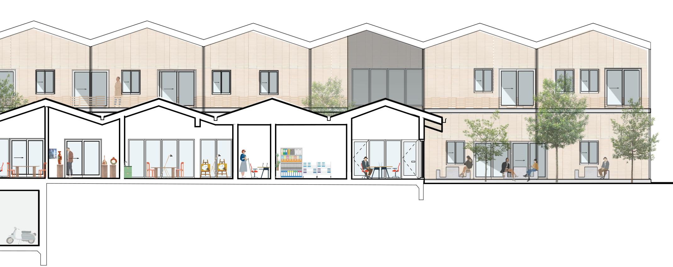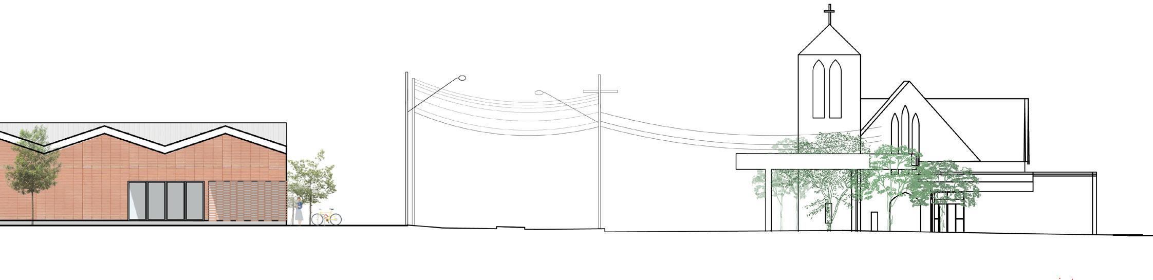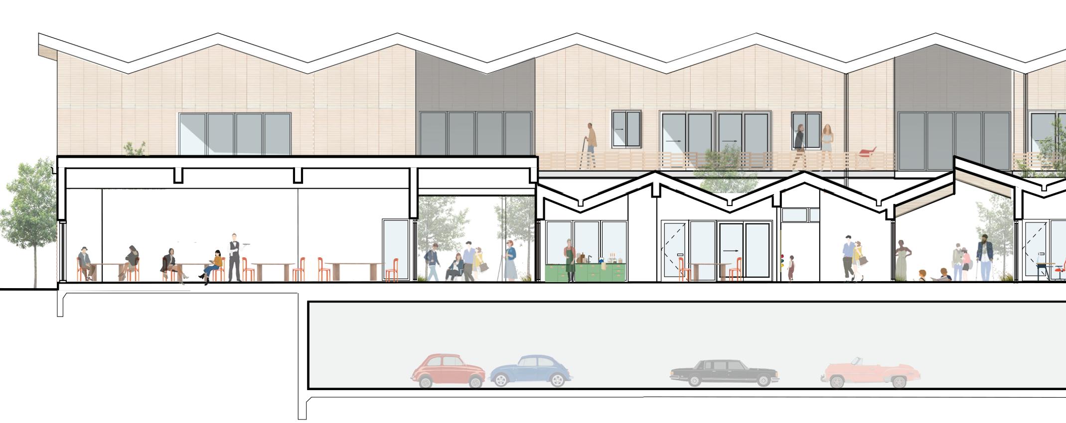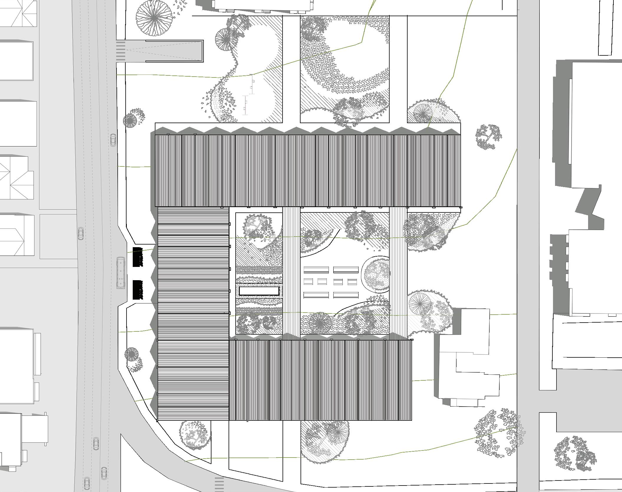 Below: Adhering to the neighborhood scale, the addition maintains a modest height while increasing density