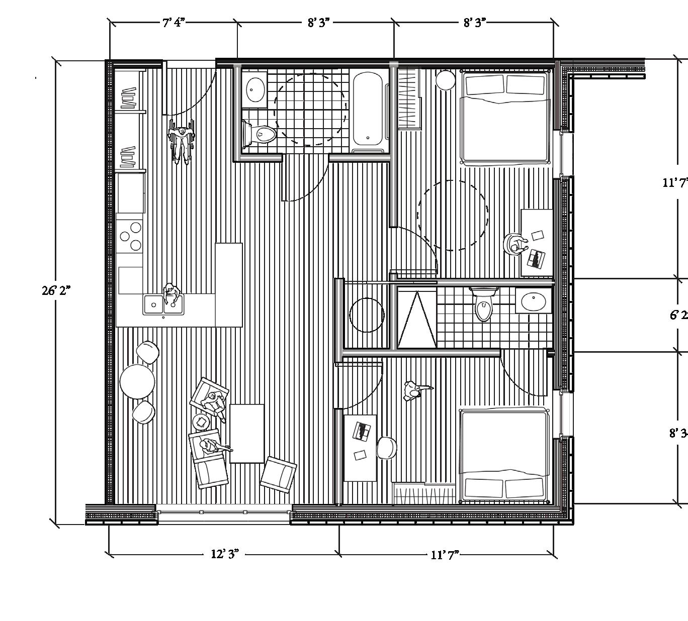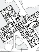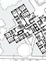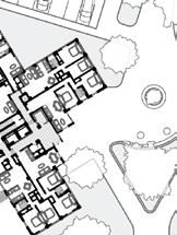 Front Patios are expanded to create highly visible entry areas that feel safe to occupy. Exterior ramps from the main campus pathway allow for residents to enter the lobby at-grade, improving accessibility.