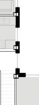 1 A Lobby Expansion marks a clear front entrance with added glazing and doors for increased daylighting and natural ventilation. Spaces formerly occupied by kitchens in the two apartments nearest the entry, which have been relocated and reclaimed as part of the expansion, become a space for a waste collection room and mail and package area.