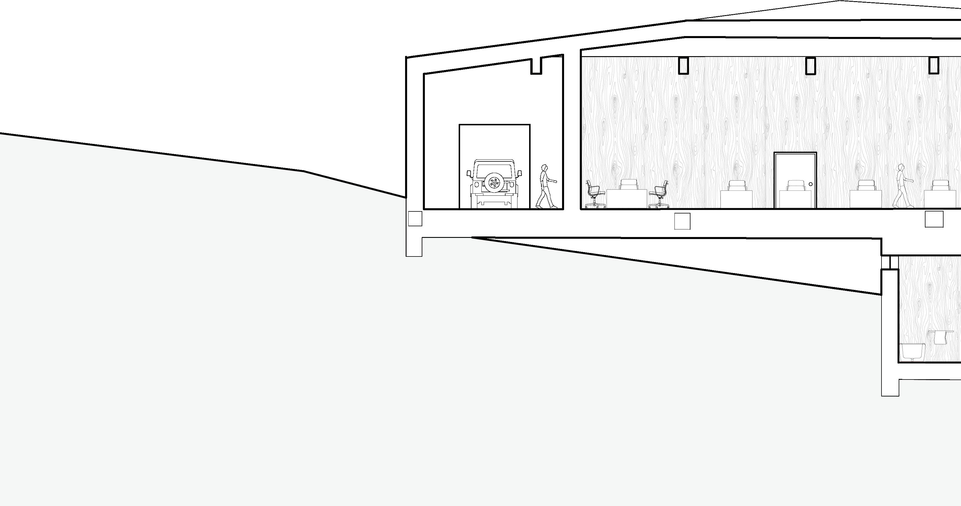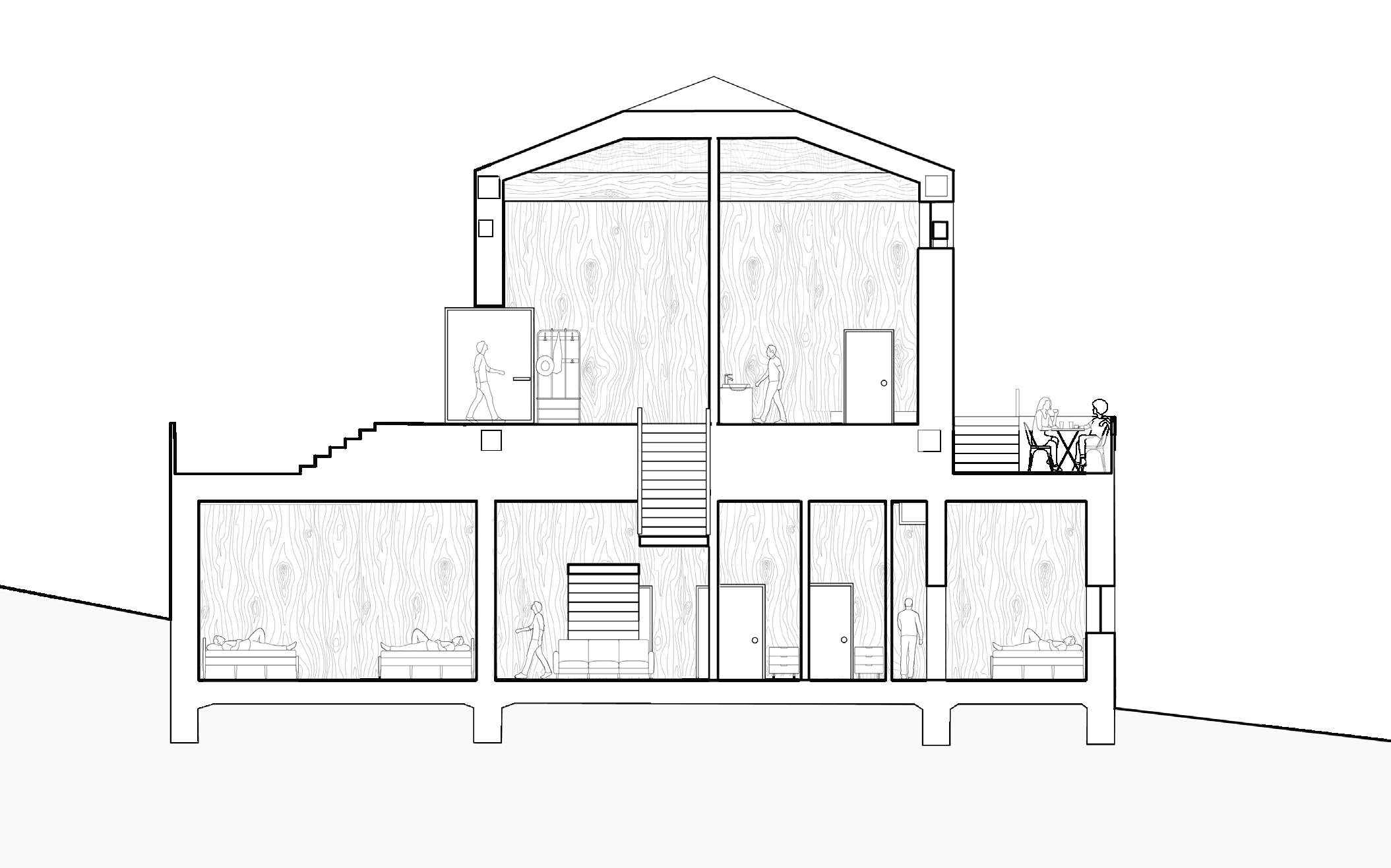 Designed to preserve the Tyrolean Mountains, this research center minimizes its footprint through the use of a large cantilever with minimal ground contact. The extreme site is analogous to potential future sites of habitation and study such as Patagonia and Siberia. In response to the steep site, the masonry base of the project embeds into the mountain slope, creating a visual and physical connection with the mountain. The long cantilever, supported by a large box truss, perches on top of the base. The stone and plaster layer reflects the typology of the region, which is characterized by the split-material houses. Moreover, the layers acknowledge and accommodate the center’s dual purpose as a research facility and hiking hut.