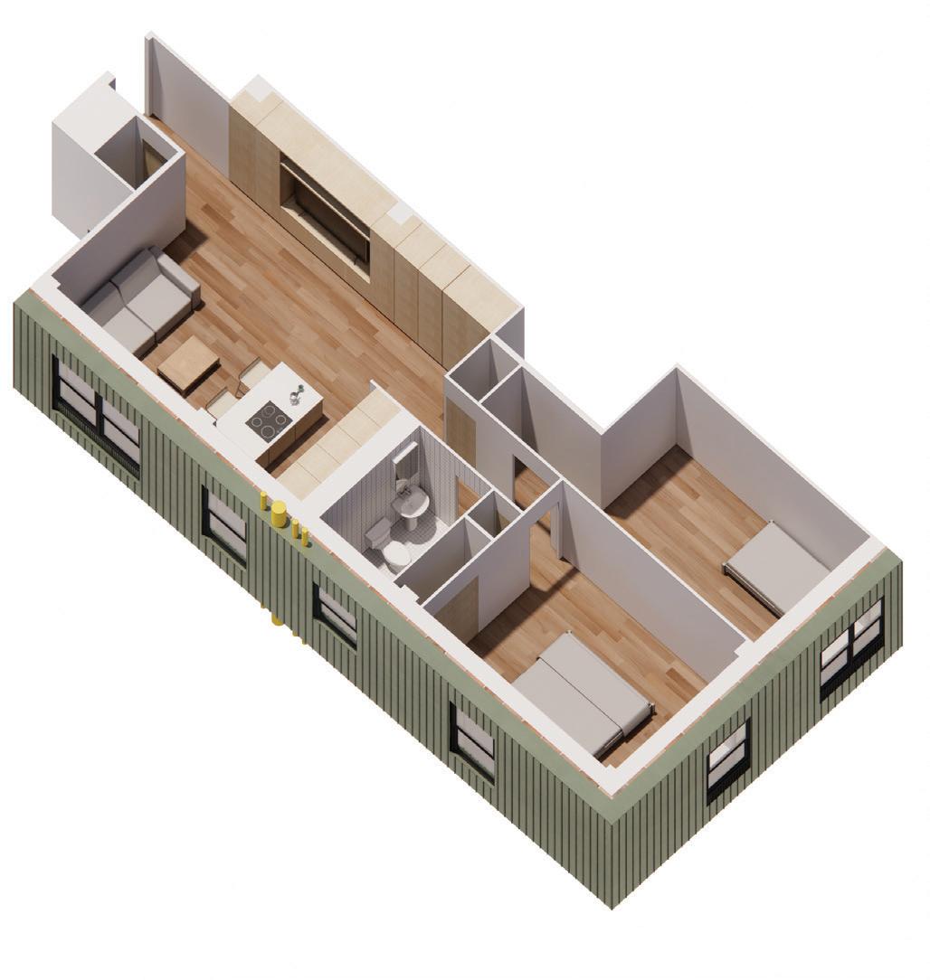 1 New Laundry and Lounge Spaces on the second floor allow for a row of washers and dryers within each building, making laundry convenient and providing a space for neighbors to congregate indoors.