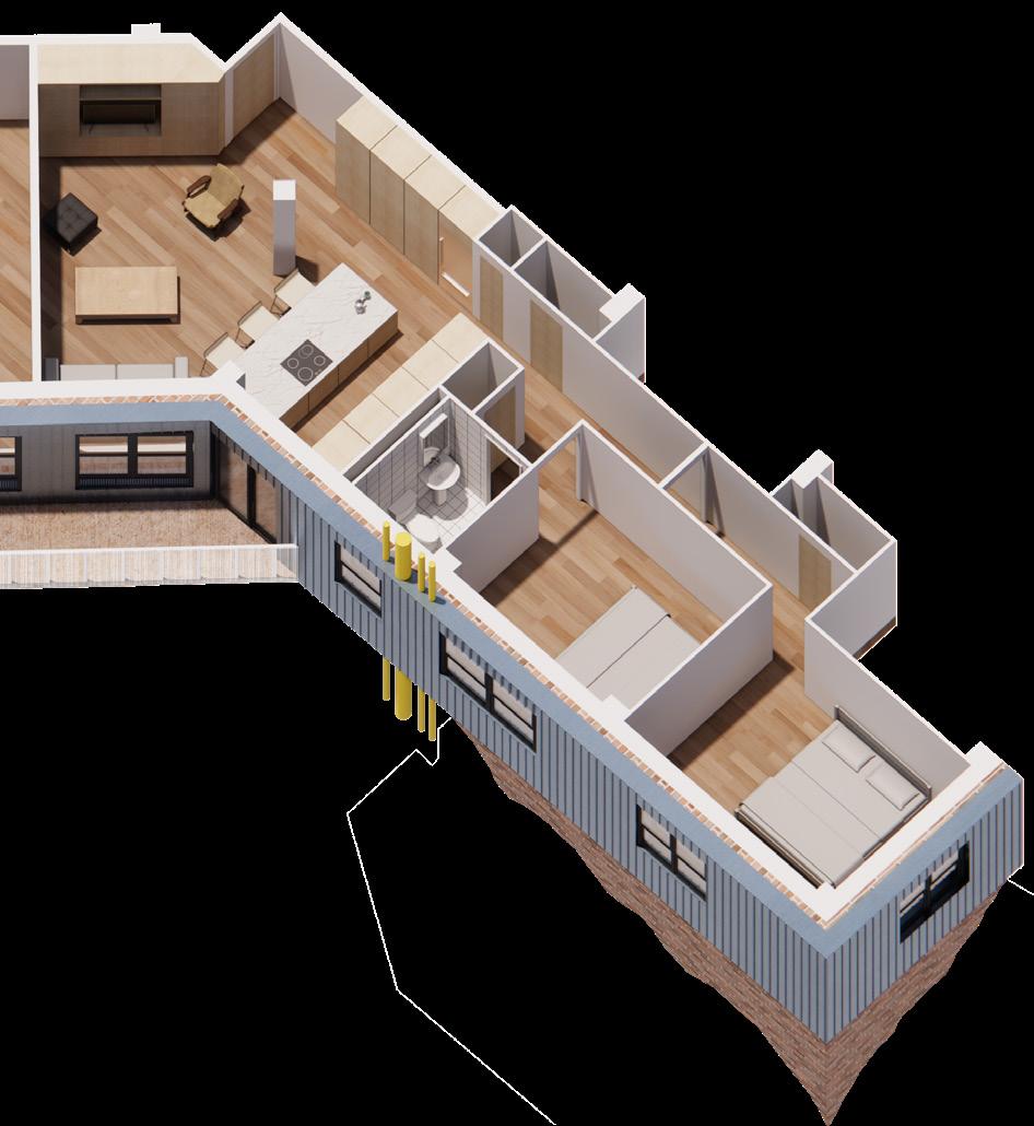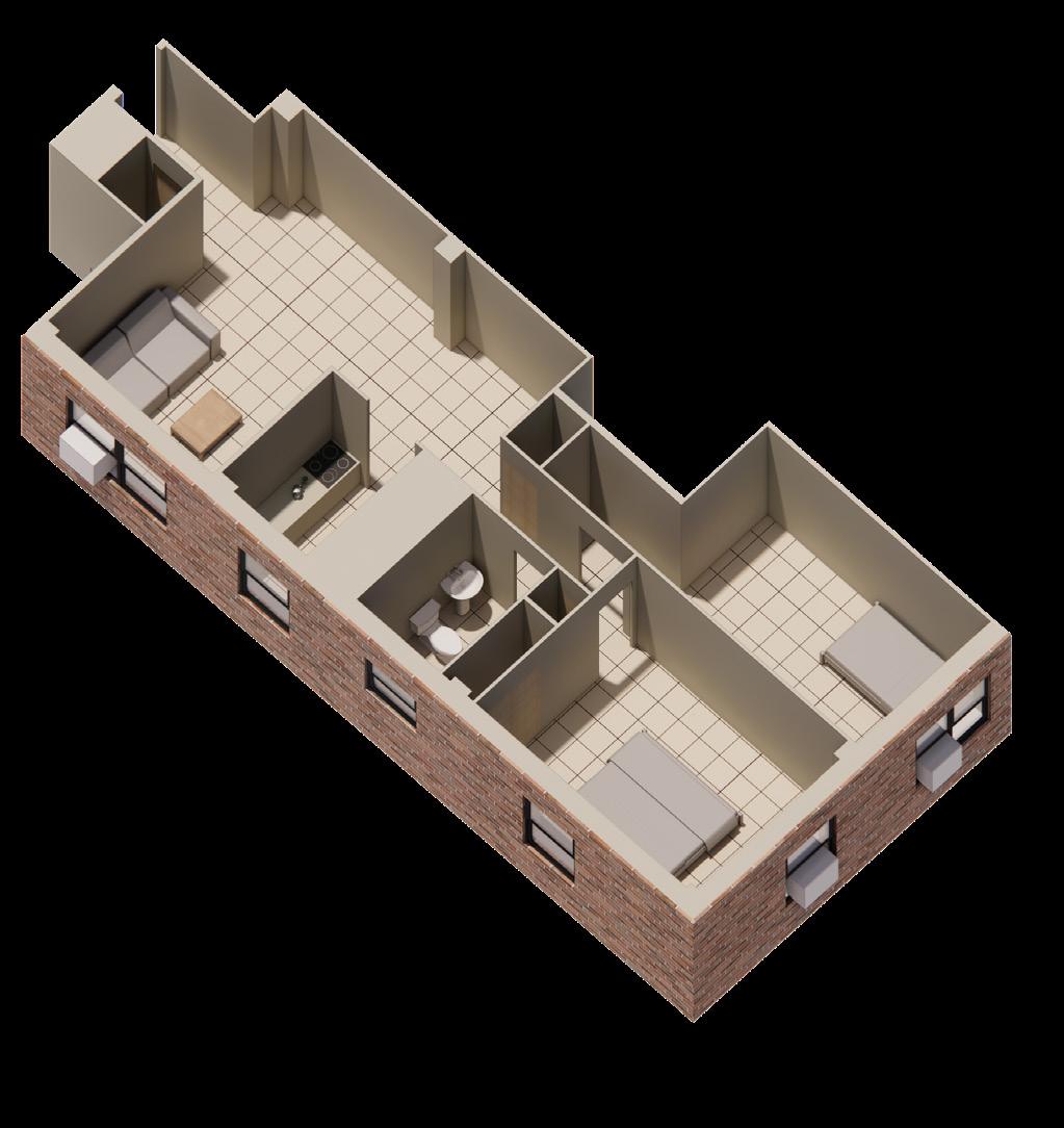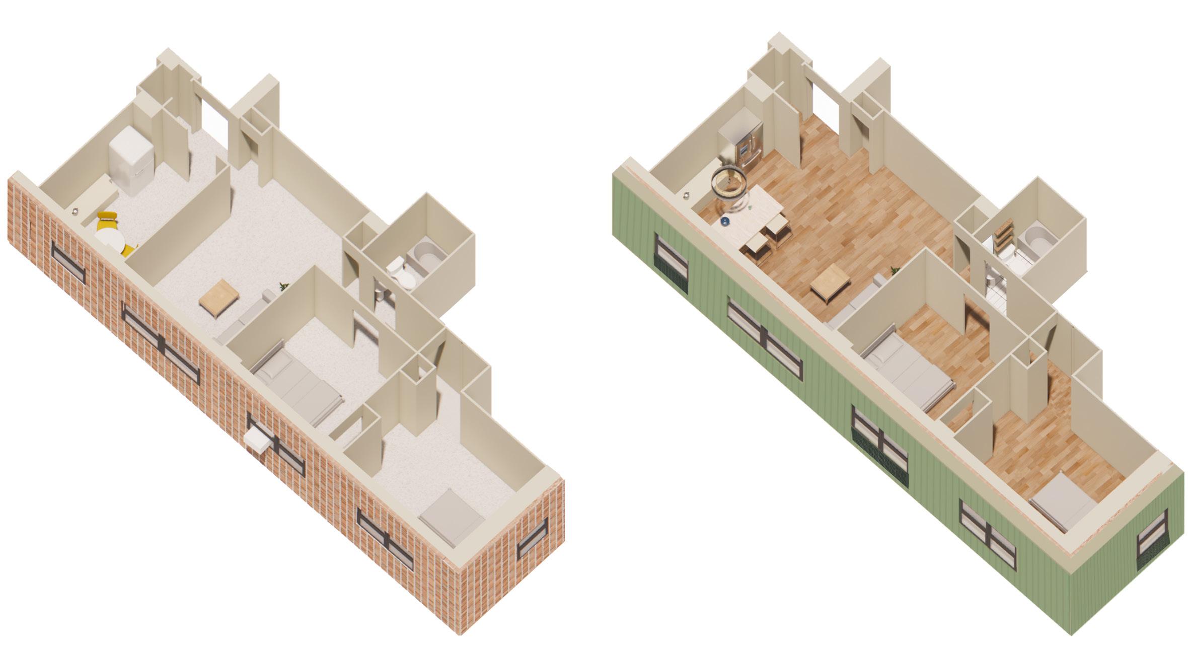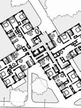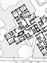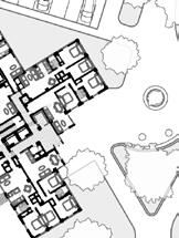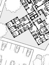 Front Patios are expanded to create highly visible entry areas that feel safe to occupy. Exterior ramps from the main campus pathway allow for residents to enter the lobby at-grade, improving accessibility. New Compliant Elevators are relocated and sized to fit an emergency medical service stretcher cab.