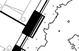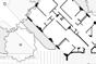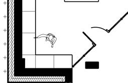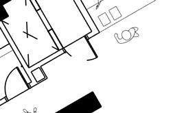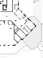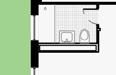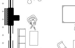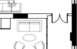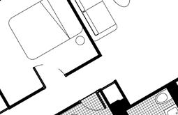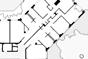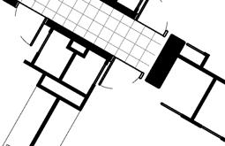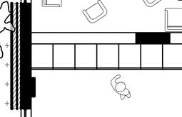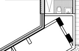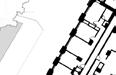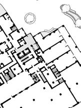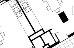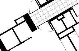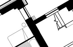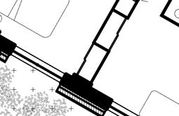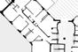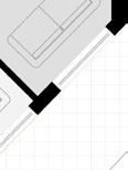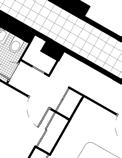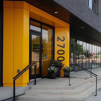 1 A Lobby Expansion marks a clear front entrance with added glazing and doors for increased daylighting and natural ventilation. Spaces formerly occupied by kitchens in the two apartments nearest the entry, which have been relocated and reclaimed as part of the expansion, become a space for a waste collection room and mail and package area.
