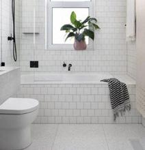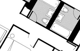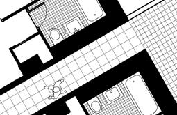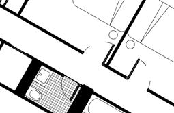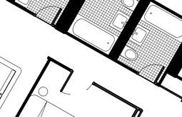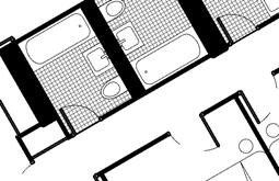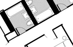 Upgrade Bathrooms and Plumbing Pipes within the depth of the overclad. Existing plumbing chases and pipes are re-purposed as fresh air vents. Fresh fixtures and finishes on the walls and floors of the bathroom provide them a clean and updated aesthetic.