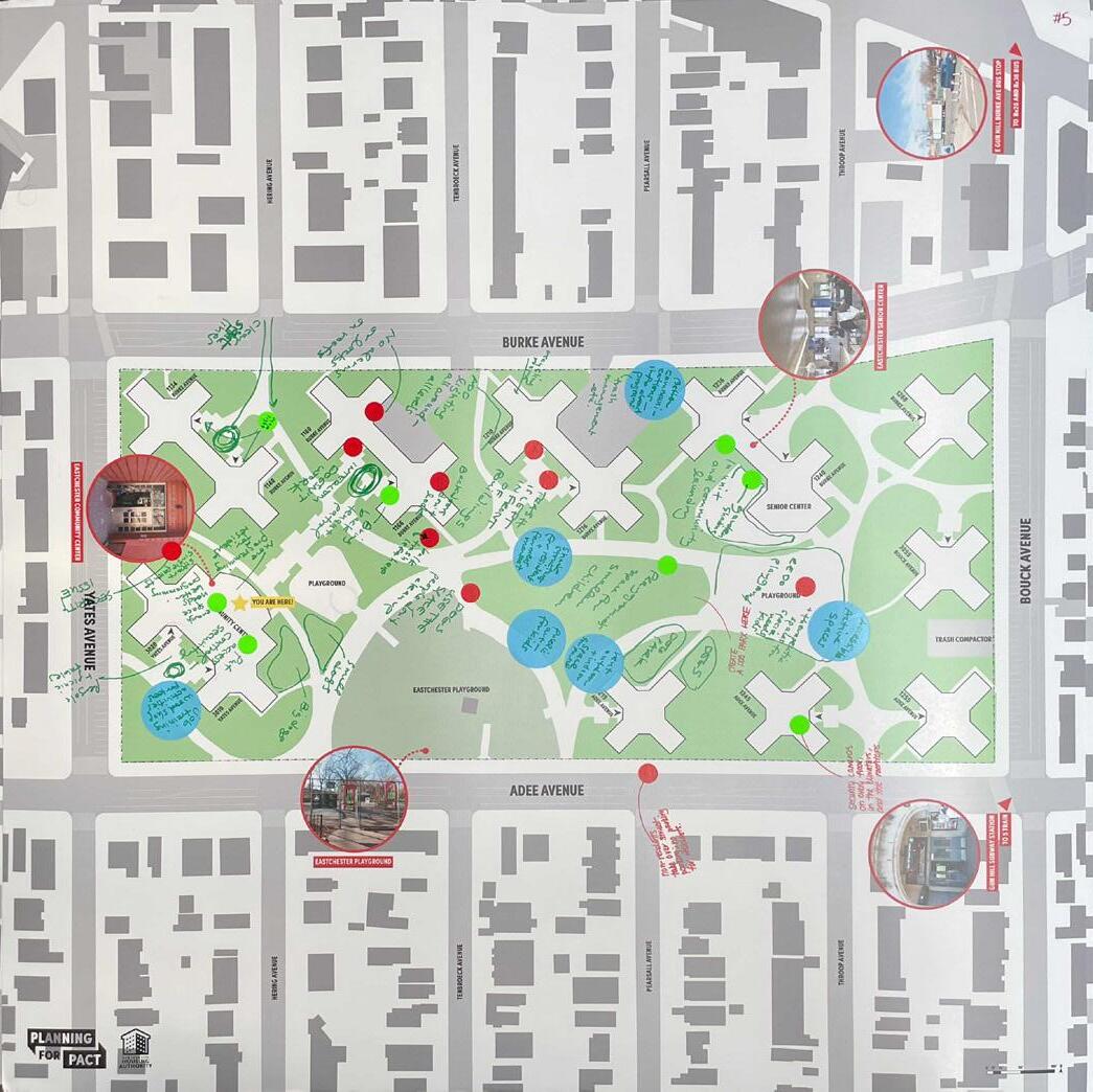 A major component of the PACT process involves gathering resident feedback on existing campus conditions and desired upgrades. This document includes a summary of priorities, ideas, challenges, and opportunities, as identified by residents, that should inform plans for improvements to Eastchester Gardens as facilitated by the PACT program. This feedback was solicited as a part of facilitated exercises and discussions designed to surface ideas and visions for the Eastchester campus, buildings, and homes.