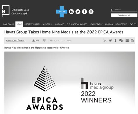 “Recognition from the Epica jury is particularly meaningful because validation from journalists is critical to the network.”
