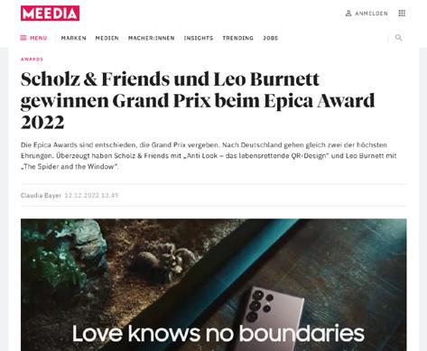 Within the agency and the network the creatives always celebrate an Epica Award because you get honoured by the press, by journalists who really dig into stories. Benjamin Merkel, ECD of Leo Burnett Germany