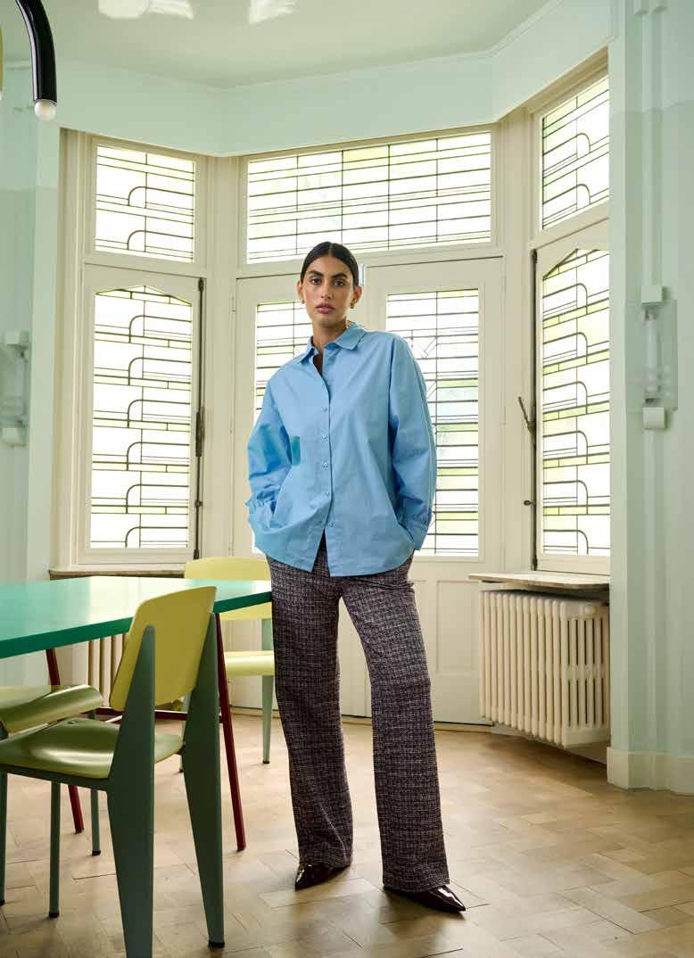 Val je voor nostalgie? Deze collectie knipoogt naar iconische looks uit het verleden, van seventies pantalons en eighties mantelpakjes tot warm getinte collegelooks. Durven is de boodschap: combineer je favoriete stuks op een eclectische manier en zorg zo voor een eigentijdse touch.
