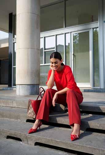 Pull 125 €, Pantalon 159 €, Sac à main 119 € Blouse 159 €, Pantalon 159 €, Sac à main 89 €