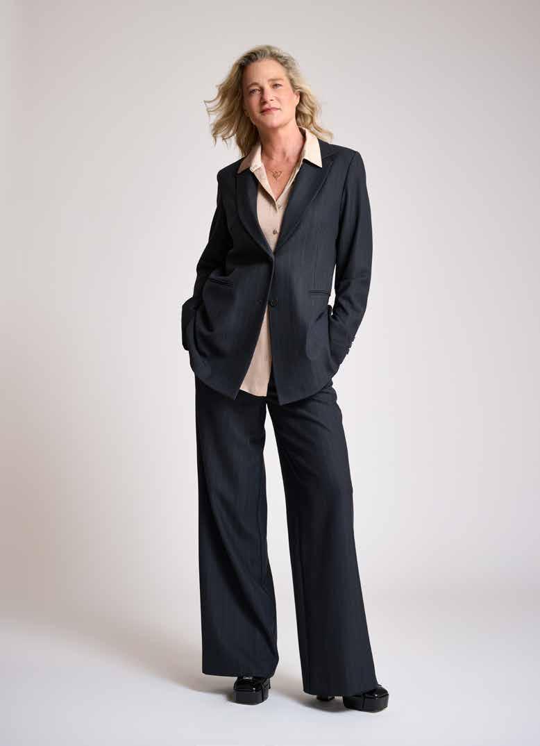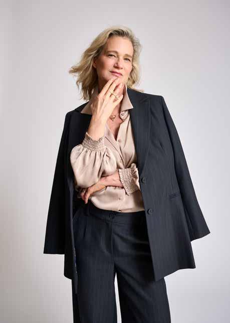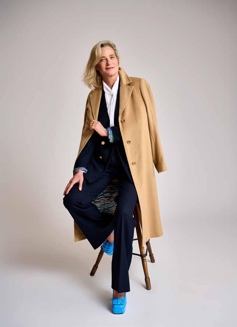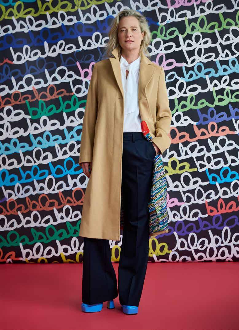 « J’aime la puissance discrète du costume féminin. Il impose le respect dans un monde souvent codé au masculin. Le manteau camel, lui, est un classique indémodable. Ce qui m’intrigue, c’est la symbiose entre le savoir-faire classique et l’art. »
