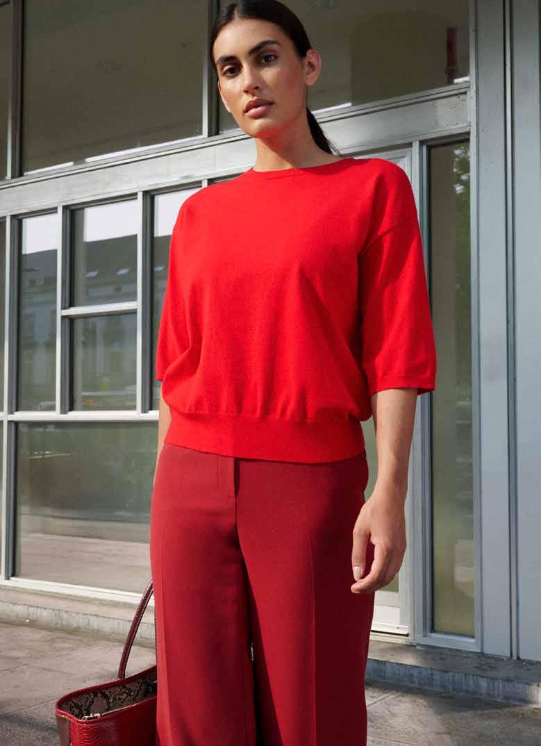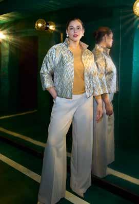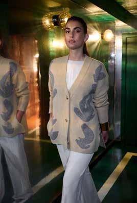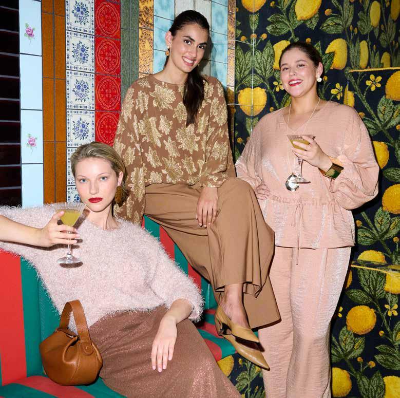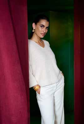 Du matin en ville à une soirée festive, cette collection s’adapte à vos envies. Les silhouettes fluides et sophistiquées jouent avec des matières luxueuses et des détails comme les manches chauve-souris, le jacquard zigzag, le lurex et les touches métalliques. Et bien sûr, une fête sans paillettes ? Impensable.