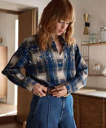 Cet hiver, le rouge ne joue pas solo. Du carmin au bordeaux, les teintes ardentes s’embrasent et électrisent le denim brut. Résultat ? Des silhouettes qui osent, qui célèbrent, qui dansent. Un jeans constellé de sequins, une chemise lavallière en denim, un chemisier rayé brodé d’une touche d’espièglerie : chaque détail allume une étincelle. La saison s’annonce joyeuse, audacieuse, festive.