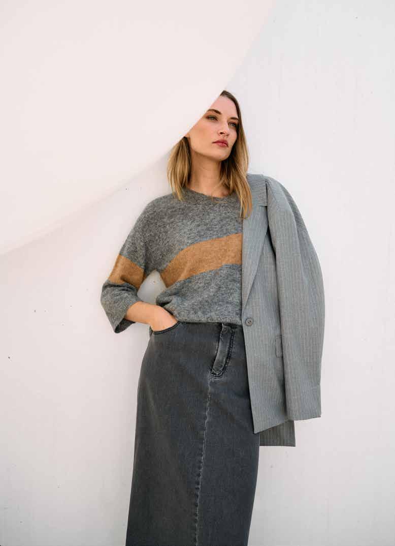 Pull 139 €, Jupe 129 €, Sac à main* 129 €