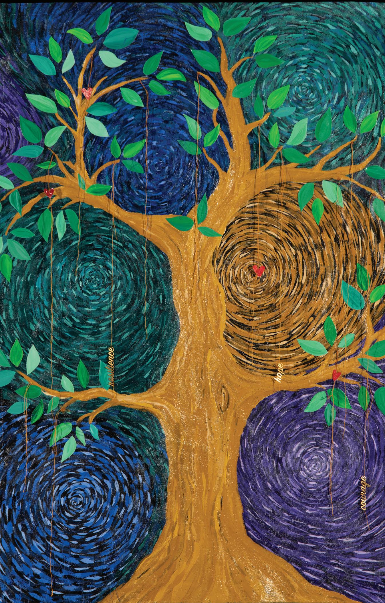 To illustrate continuity, we decided to tie dye our panel in a spiral to show the vibrant culture of camp and how it continues to grow over time. We also added the camp values that we use consistently at camp, to assist the campers and staff as they grow on their own journey.
