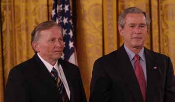 Carl and President George W. Bush at the ceremony where WARF was awarded the National Medal of Technology in 2003.