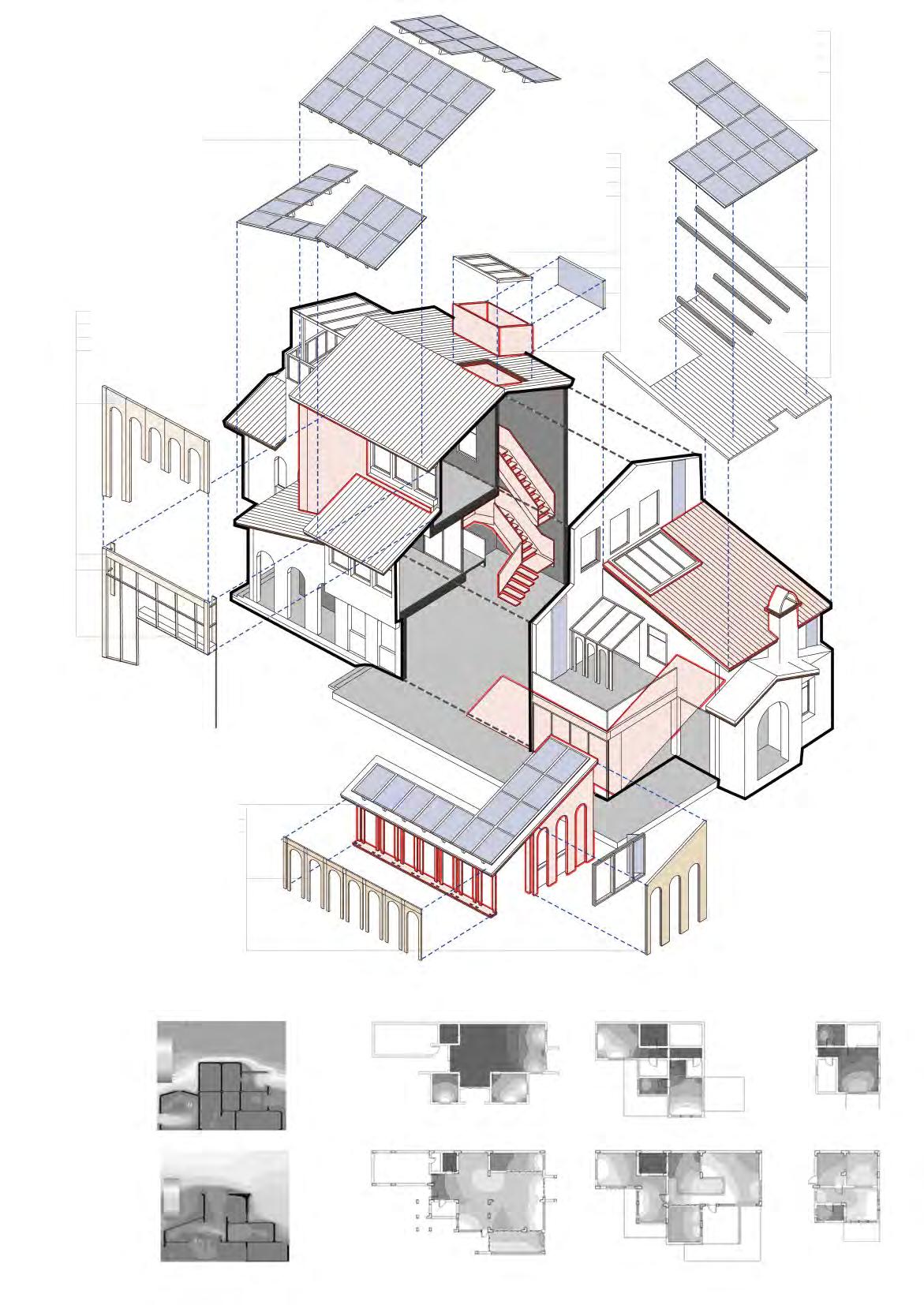 I put the idea of layering into “unit scale” when I come into individual work on one block. That is to say, every family has its own farm garden. Every family farming roof faces the middle of the block to keep the idea of water collection and reuse.