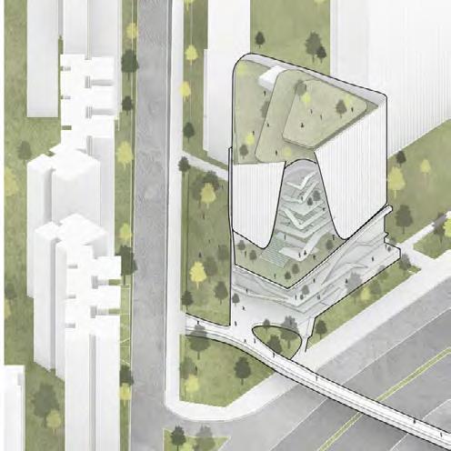 Our Performing Arts Center was designed with the intention of building connections with both the surrounding community and within the structure ifself. Our Parti, interconnected plazas, allowed us to build crucial connections between different spaces and floors, as well as users, creating opportunities for unique programming.