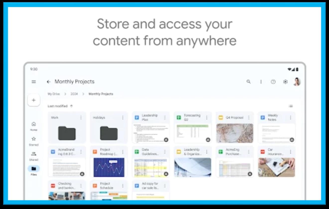 Es un servicio de alojamiento y sincronización de archivos desarrollado por el Google. Lanzado el 24 de abril del 2012, el servicio permite a sus usuarios almacenar archivos en la nube (en los servidores de Google), sincronizar archivos entre dispositivos y compartir archivos. Cada usuario cuenta con 15 gigabytes (GB) de espacio gratuito para almacenar sus archivos, ampliables mediante diferentes planes de pago. Es accesible a través del sitio web desde computadoras y disponen de aplicaciones para Android e iOS que permiten editar documentos y hojas de cálculo.