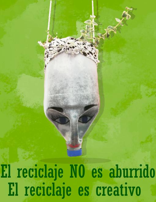 Connotación: Incita a usar el reciclaje para crear manualidades con diferentes usos, como maceta que es este caso o porta lápices entre otrascosas.