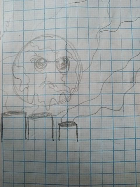 Denotación: Ilustracion del mundo y bote de basura con rostro y brazos, tipografía en negro con fondo verde y números hechos pon papel de textura.