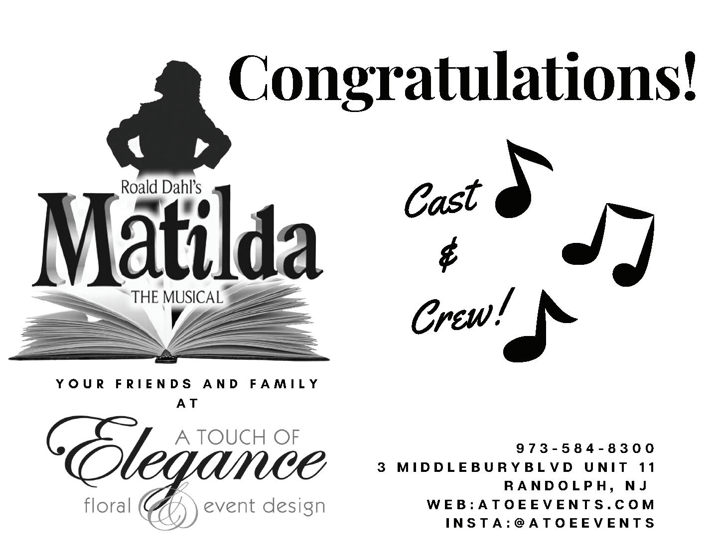 We are so excited to present Matilda the Musical this year. The cast and crew have put in so much time, work and energy into making this a production we just know you are going to love.