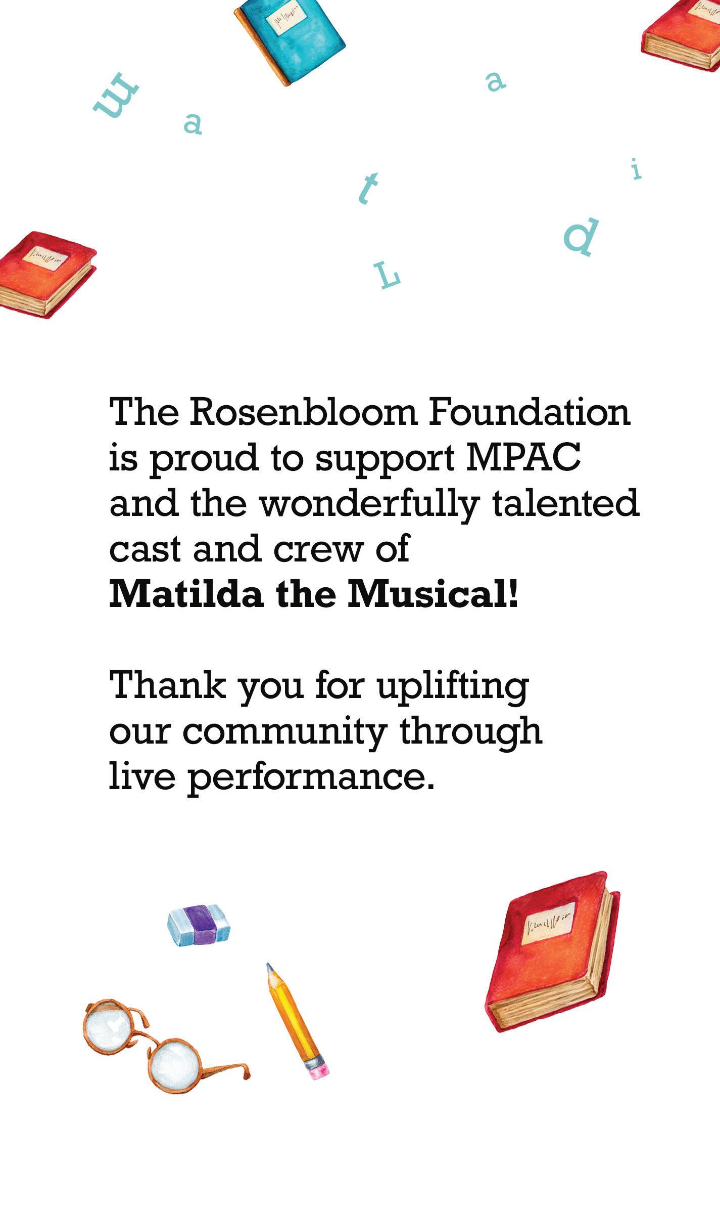 MPAC gratefully acknowledges the following generous sponsors of Matilda the Musical.