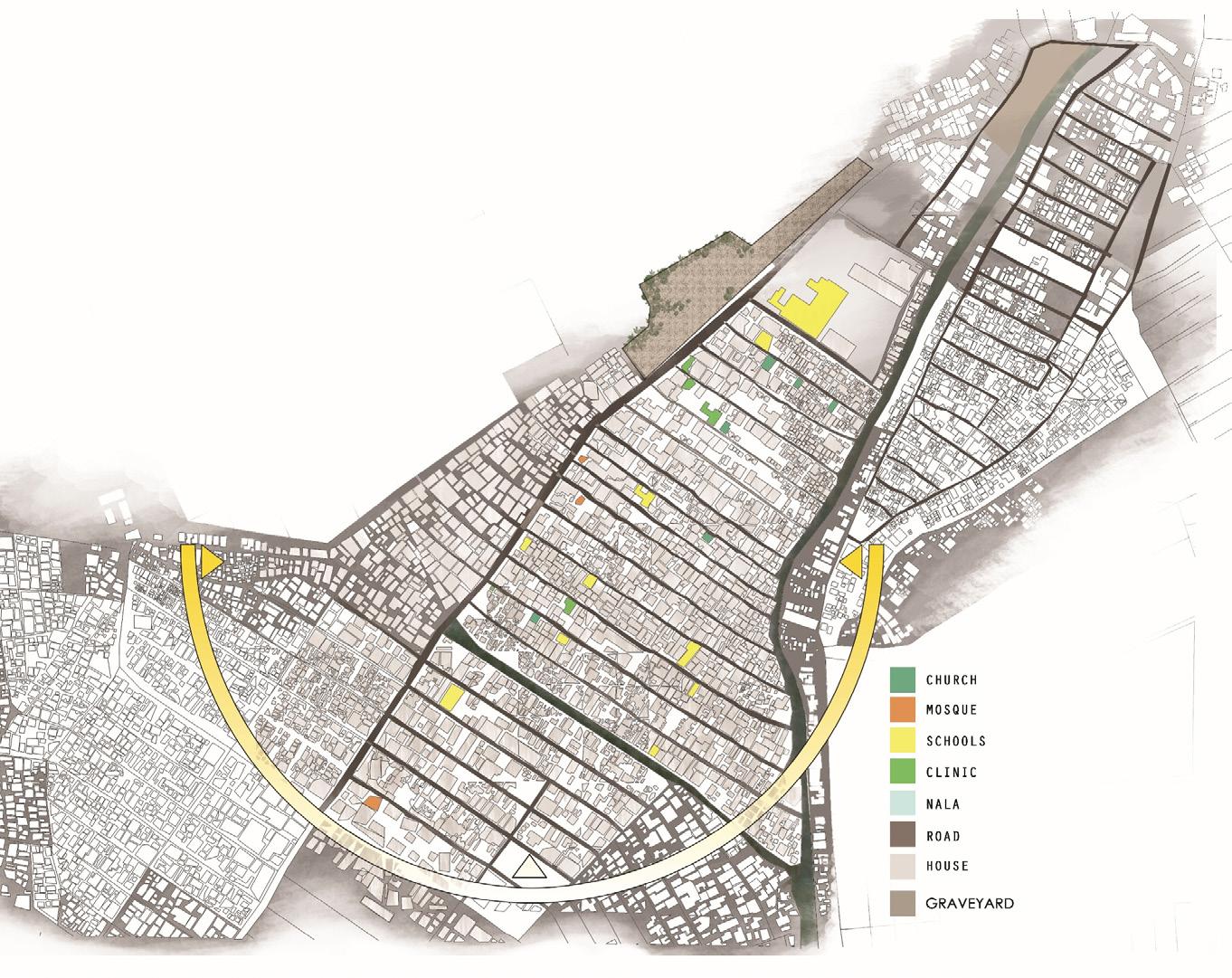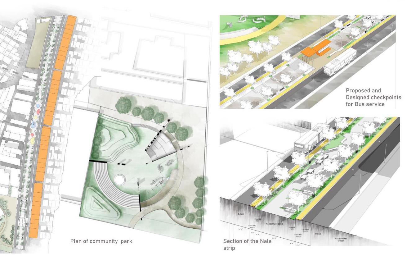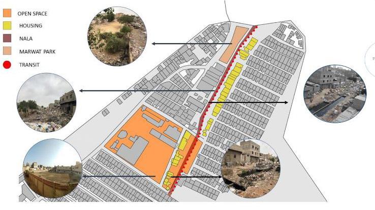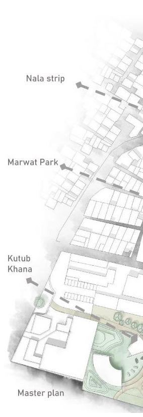 a community park and a library, dedicated to promoting literacy and social activities. Sustainability is key, with an emphasis on costefficient materials and environmentally effective landscaping to improve pedestrian comfort through passive cooling and shading. By creating inclusive spaces that cater to diverse age groups, the project seeks to bridge community divides, improve public health through access to clean and green areas, and stimulate local economic development through commercial opportunities. This initiative represents a significant opportunity to enhance the quality of life for Azam Basti residents and promote a sense of belonging within the community.
