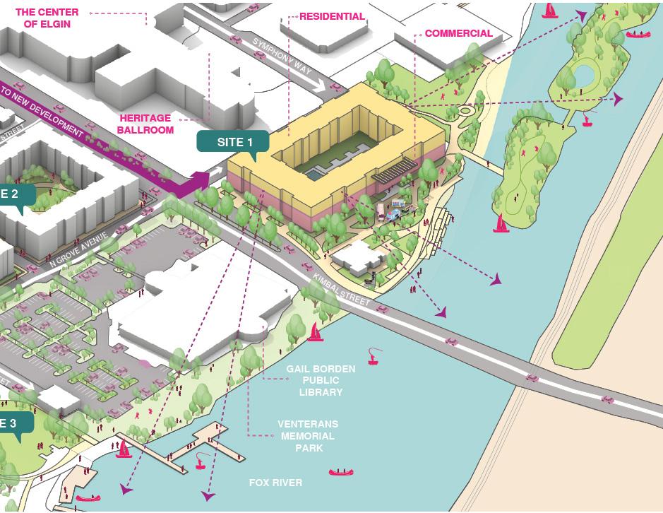 The North Grove Redevelopment Area Plan will transform the Fox River into a mix of lively destinations and tranquil retreats while introducing diverse housing and enhancing downtown Elgin.
