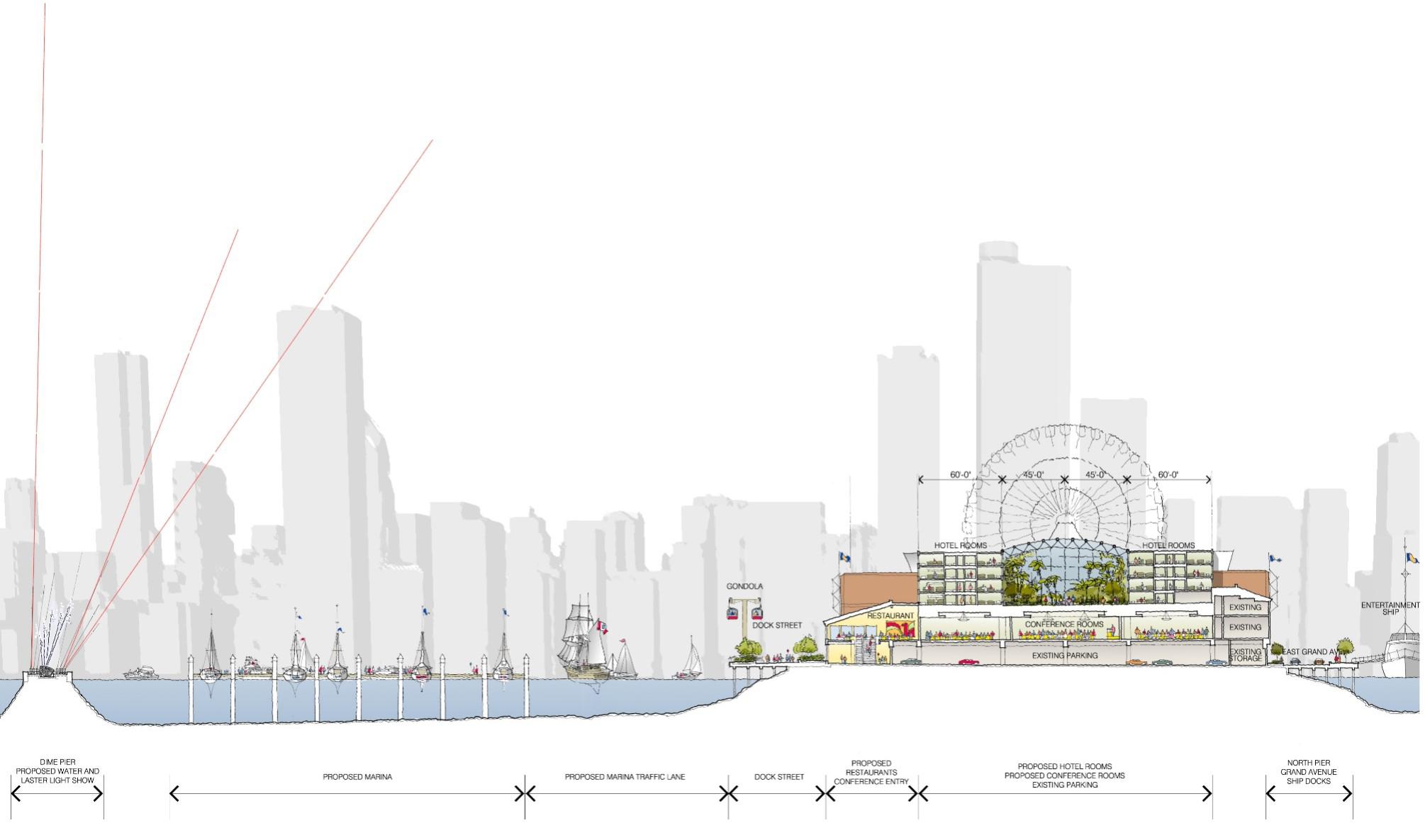 The vision for Dime Pier revitalization project is to highlight the unique character of the existing infrastructure as a framework for exceptional experiences. By creating opportunities for visitors to engage with breathtaking views and dynamic events along the pier, we aim to boost foot traffic to Navy Pier and elevate its status as a premier social destination in the city.