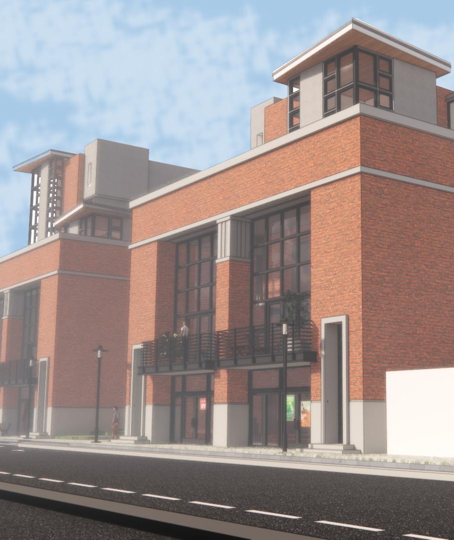 This project aims to create a vibrant, sustainable community hub that enriches the urban fabric at the intersection of Evanston and Rogers Park. This five-story mixed-use development features 55 residential units and four commercial spaces, thoughtfully designed to cater to diverse housing needs while promoting local businesses. The unit mix includes 10 three-bedroom, twobath units, 30 two-bedroom, 1.5bath units, and 15 one-bedroom, one-bath units, ensuring a variety of options for residents.