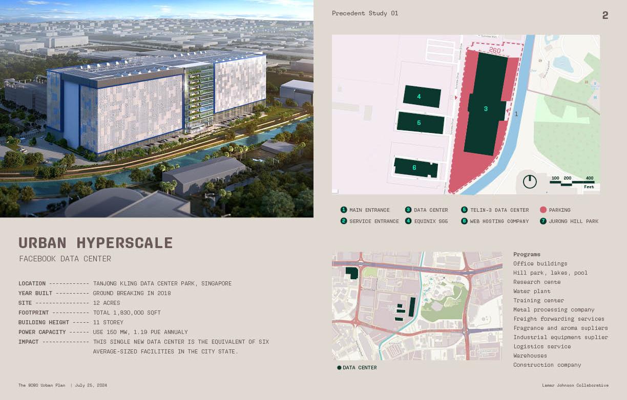 Site 2 - A mixed-use development featuring midrise building and 30 rowhouses to the north. The plan incorporates private rooftop amenities, ground-floor commercial spaces, with an alternate design preserving a historical silo as a public art feature.
