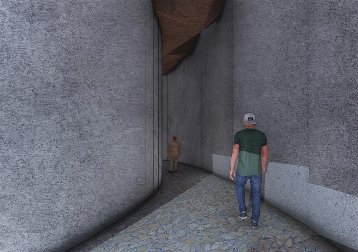 The design employs brick walls to guide visitors along a curated spatial journey divided into three phases—separation from the profane, transition, and integration into the sacred—progressing from dark to light and open to enclosed spaces. Drawing inspiration from the site's existing trees, the form seamlessly integrates the natural landscape into the structure.