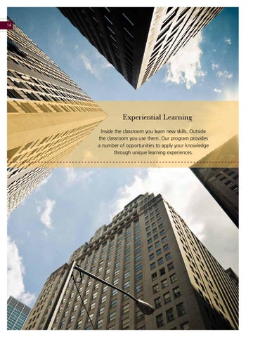 Experiential Learning Inside the classroom you learn new skills. Outside the classroom you use them. Our program provides a number of opportunities to apply your knowledge through unique learning experiences.