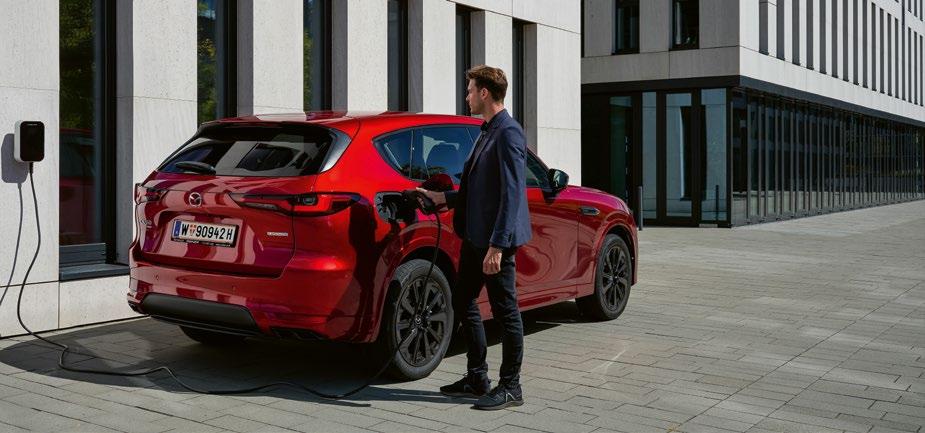 Mit dem Mazda CX 60 PHEV wird ökologisches Fahren zum Kinderspiel, die rein elektrische Reichweite von 63 Kilometern in Kombination mit dem Benzinmotor für längere Strecken ist unschlagbar. Der erste Plug in Hybrid von Mazda begeistert mit einem ausgezeichneten Fahrerlebnis, einer opti malen Umweltbilanz und der neuesten Technologie. „Ich empfehle den CX 60 PHEV allen Kund:innen, die ein emissi onssparendes und luxuriöses Fahrzeug mit geringem Verbrauch suchen“, unterstreicht Ursula Frank.
