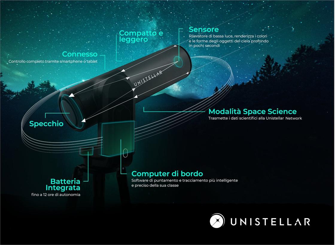 Da quest'anno la nostra scuola si è dotata del telescopio Unistellar evscope v2 di ultima generazione, capace di coniugare l'osservazione classica con l'astrofotografia. Si tratta di una vera e propria rivoluzione nel campo dell'astronomia, perché il telescopio, completamente computerizzato, permette l'osservazione di oggetti del cielo profondo anche nelle nostre condizioni di forte "inquinamento luminoso". Infatti, oltre alla normale configurazione a specchio, lo strumento incorpora un potente sensore da macchina fotografica capace di catturare la luce necessaria per mostrare i corpi celesti del cielo profondo. Visioni un tempo possibili solo dopo giorni di elaborazione fotografica in studio, ora sono disponibili in pochi minuti e visibili da un normale tablet o cellulare