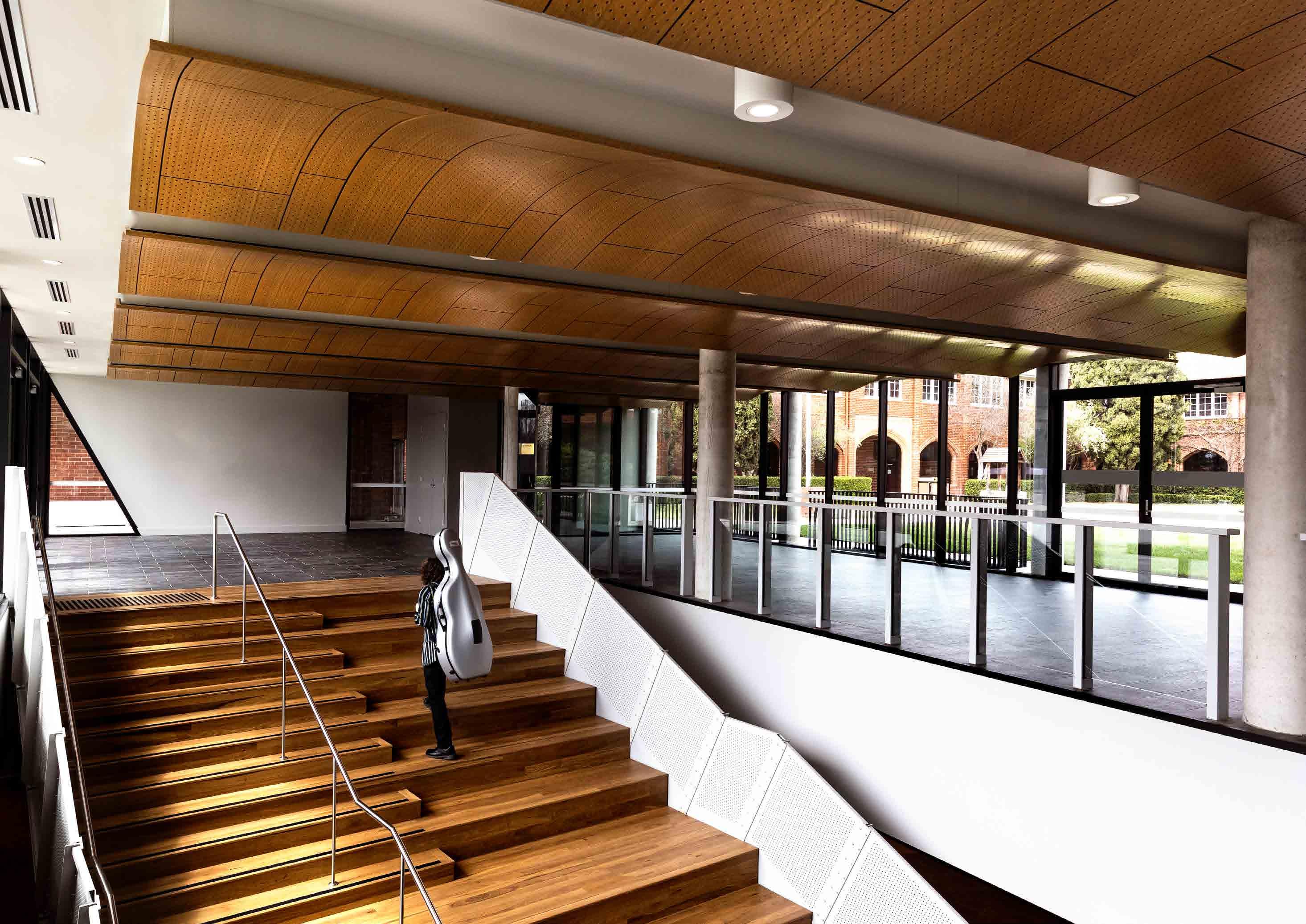 This extensive technical project required the demolition of the existing breezeway, the underground construction of the new concert hall and music facilities, and the refurbishment of the adjacent heritage-listed building.