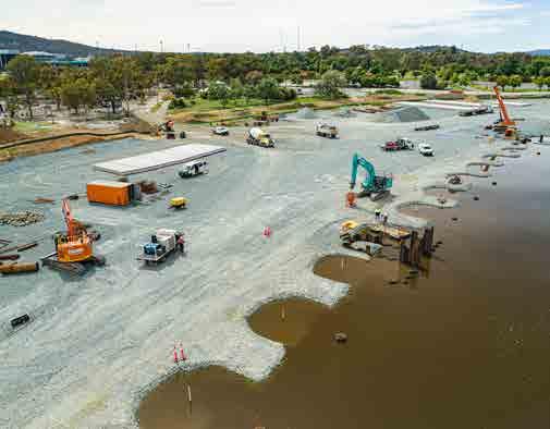This project involved extending the boardwalk adjacent to Henry Rolland Park around the West Basin of Lake Burley Griffin. This work required detailed designs, extensive environmental controls, traffic management, importing and placing over 150,000t of fill material, installing 104 concrete-filled circular hollow section piles and manufacturing and installing 104 (10m long) precast concrete submerged beams and 258 precast concrete boardwalk deck slabs. Through this work, the teams were also able to reclaim 2.8ha of new land behind the boardwalk. The organisation, planning and forethought on this project has created a space that will be enjoyed by the Canberra community for many years to come.