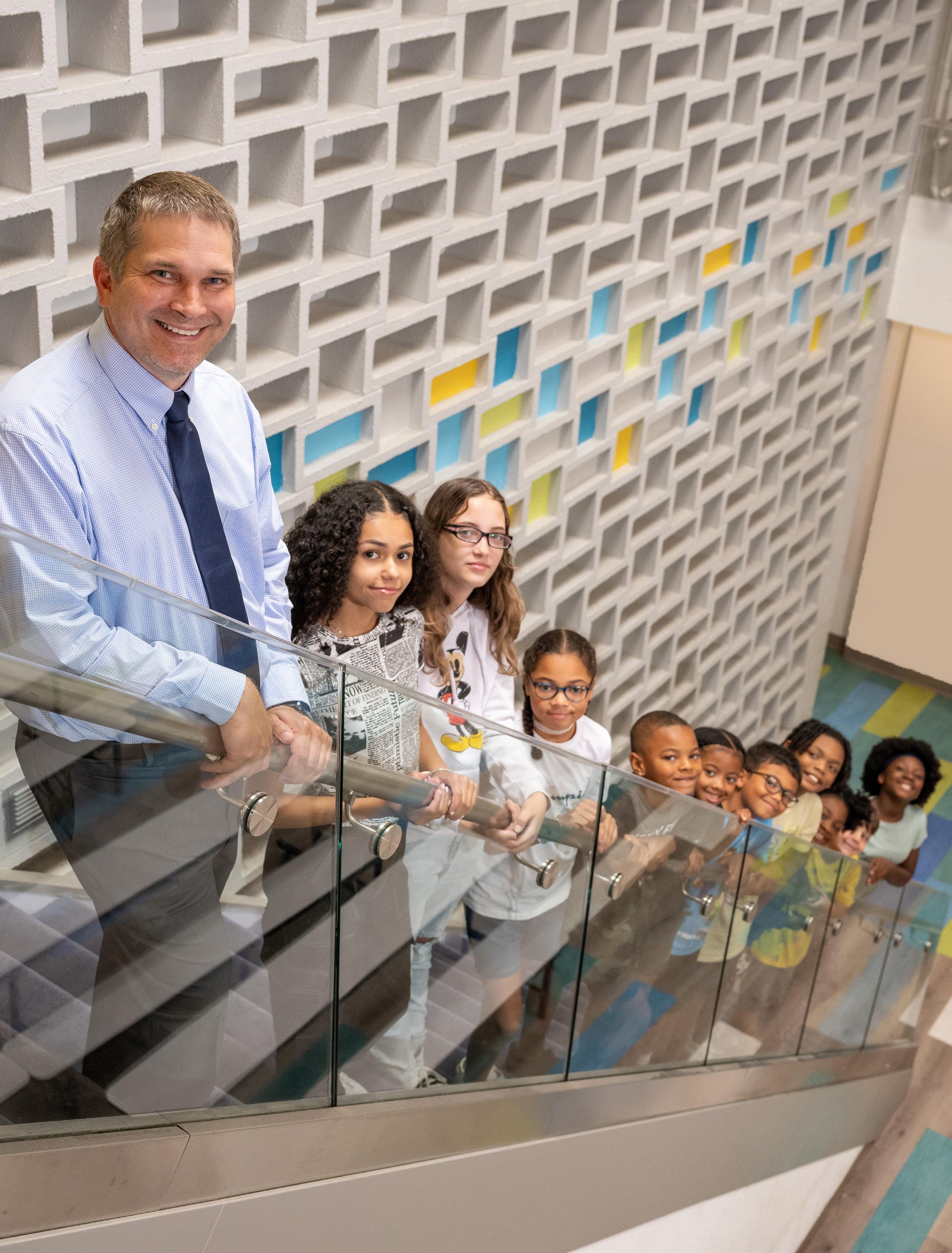 Montessori Regional Charter School Chief Executive Officer Mark Zielinski, shown here with Summer Academy students and teacher Ashley Migdal, is proud of what the public charter school has achieved over the past 20 years. Today, the K-8 school is at capacity with 650 students enrolled for the 2023-2024 school year.