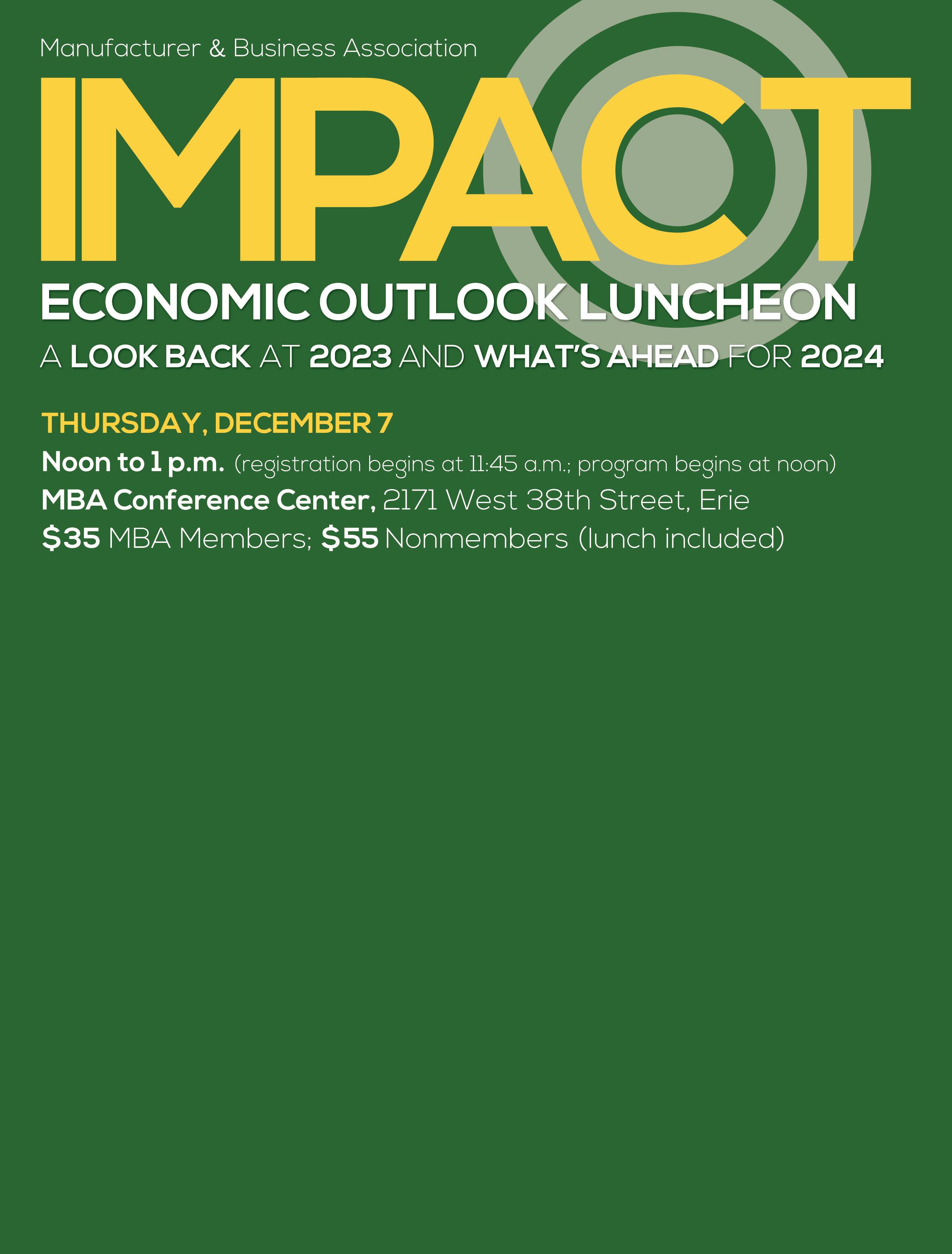 © Copyright 2023 by the Manufacturer & Business Association. All rights reserved. Reproduction or use of editorial, pictorial or advertisements created for use in the Business Magazine, in any manner, without written permission from the publisher, is prohibited. Unsolicited manuscripts cannot be returned unless accompanied by a properly addressed envelope bearing sufficient postage. The magazine accepts no responsibility for unsolicited manuscripts or artwork. The Business Magazine and Manufacturer & Business Association do not specifically endorse any of the products or practices described in the magazine. The Business Magazine is published monthly by the Manufacturer & Business Association, 2171 West 38th Street, Erie, Pa. 16508. Phone: 814/833-3200 or 800/815-2660.