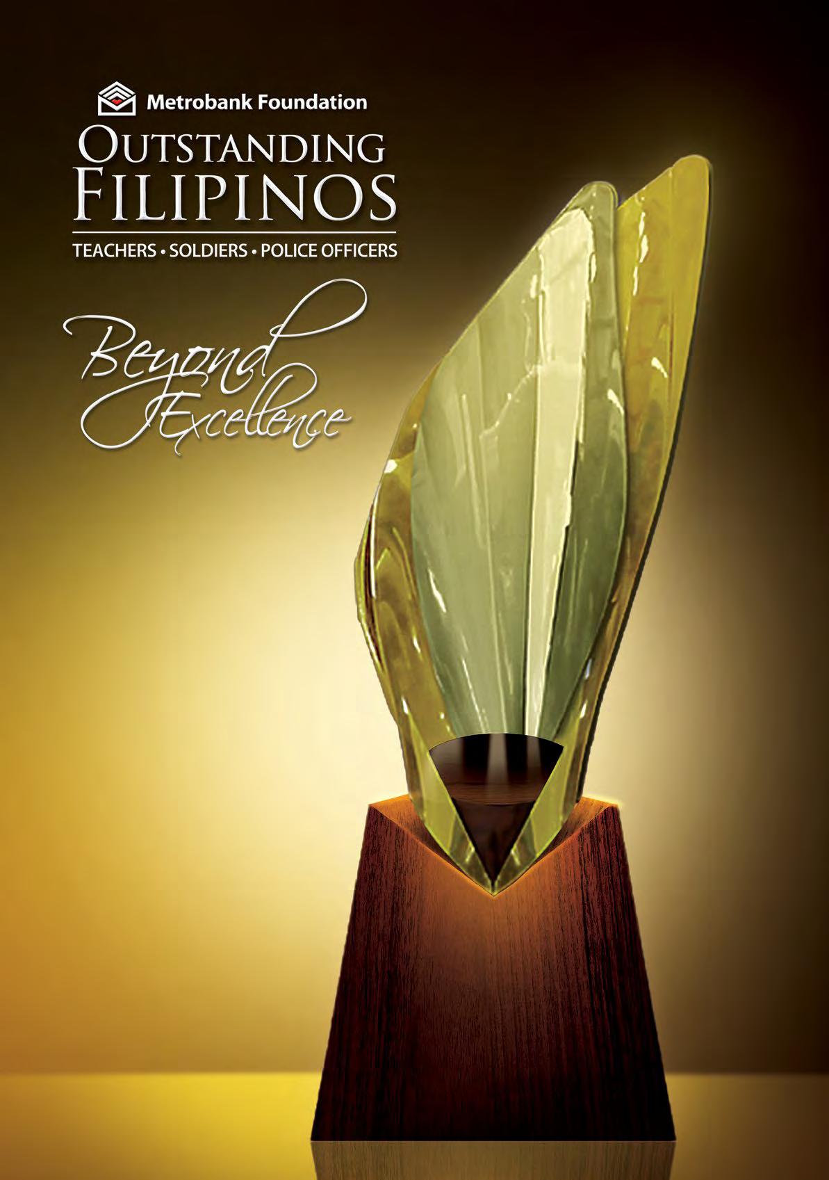 My heartfelt congratulations to the Metrobank Foundation, Inc. for continuously sponsoring the Outstanding Filipino Award Its search for Filipino exemplars under the theme of “a HEART that perseveres in earnest ZEAL for the nation” or “Puso at Sigasig” has since 1985 been a continuous source of inspiration and drive to excel to our people.