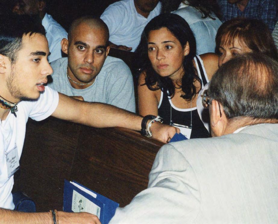 Small group discussion held during an International Community of Mennonite Brethren (ICOMB) summit. Pictured at the left is Juan Miquel Forero.