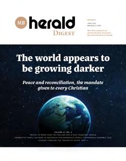 Mennonite Brethren Herald Digest is digitally published monthly by the Canadian Conference of Mennonite Brethren Churches, primarily for the use of its members, to build a Canadian MB community of faith. We seek to 1) share the life and story of the church by nurturing relationships among members and engaging in dialogue and reflection; 2) teach and equip for ministry by reflecting MB theology, values, and heritage, and by sharing the good news; 3) enable communication by serving conference ministries and informing our members about the church and the world. However, the opinions expressed here are not necessarily those of the church as a whole.