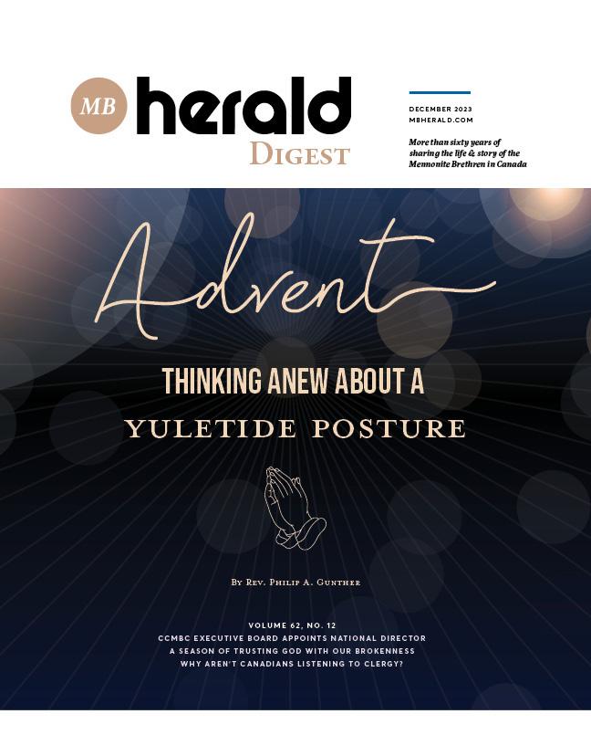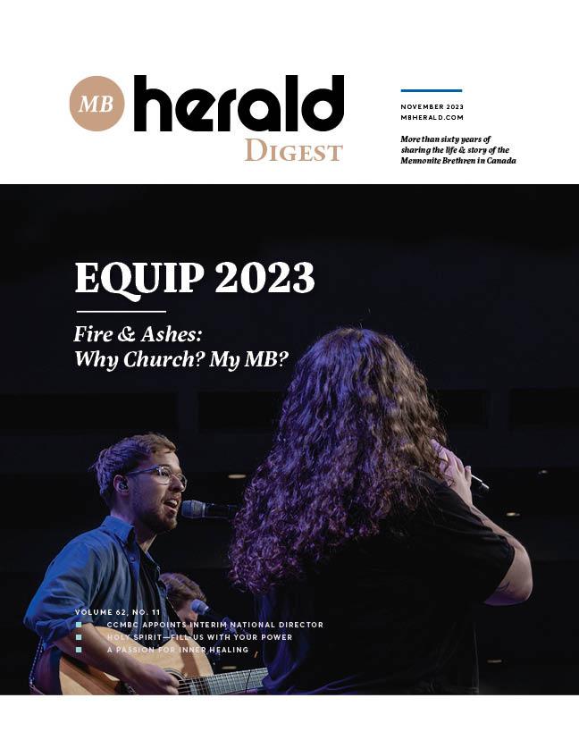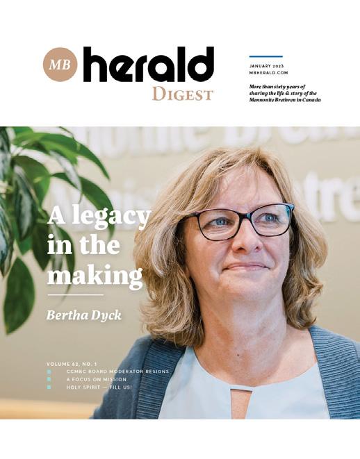 Mennonite Brethren Herald Digest is digitally published bimonthly by the Canadian Conference of Mennonite Brethren Churches, primarily for the use of its members, to build a Canadian MB community of faith. We seek to 1) share the life and story of the church by nurturing relationships among members and engaging in dialogue and reflection; 2) teach and equip for ministry by reflecting MB theology, values, and heritage, and by sharing the good news; 3) enable communication by serving conference ministries and informing our members about the church and the world. However, the opinions expressed here are not necessarily those of the church as a whole.